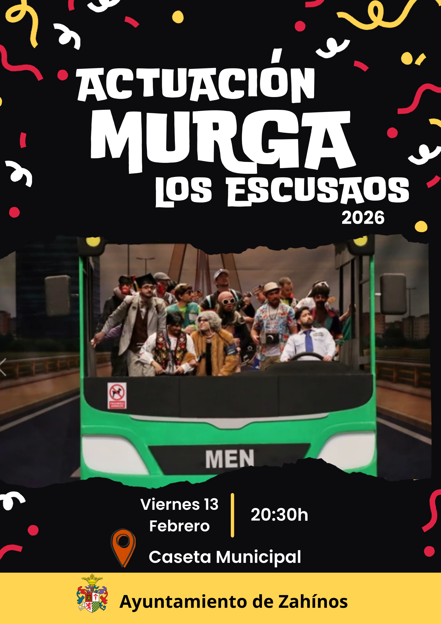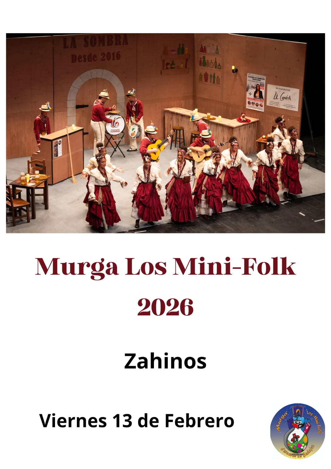 El Ayuntamiento de Zahínos os invita a disfrutar de una gran velada carnavalesca con la actuación de las murgas Los Mini-Folk y Los Escusaos, directamente desde el Concurso de Murgas de Badajoz.
